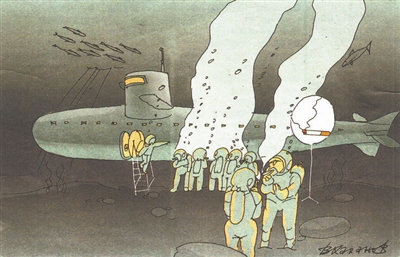 潜水员中的瘾君子自觉地走到水下吸烟区“抽一支”了,这样,可以有效地保持舱内的环境清洁。若是大家都戒烟岂不更好?【俄国】卡哈诺夫