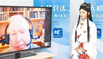 图为机器人佳佳通过网络与凯文·凯利对话。