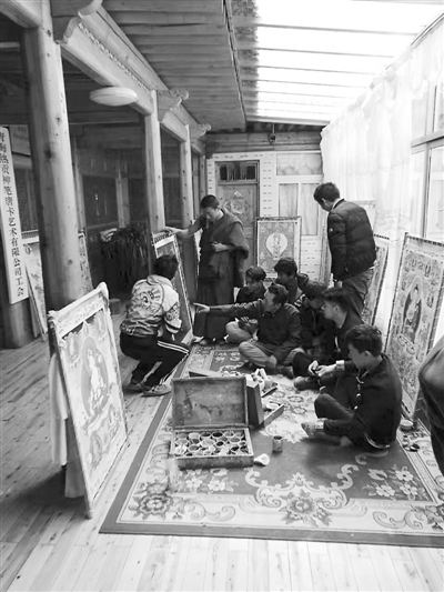 尕藏向农村贫困家庭青年传授唐卡绘画技艺