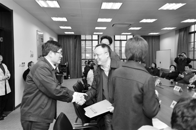 童世骏书记(左一)向职能部门负责人交办教代会代表提案