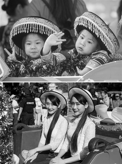 5月1日,双胞胎在云南墨江参加国际双胞胎节(拼版照片)。