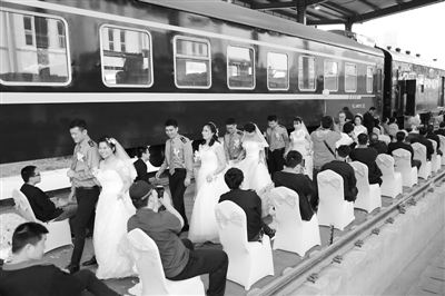 “南铁佳缘、相伴一生。”日前,福州车辆段在段职工练功基地内,为5对新人举办了一场集体婚礼。婚礼突出铁路元素,将职工练功基地,确定为本次集体婚礼的场地。段工会提前开展全方位的人员摸排,重点对该段历年开展青年联谊后交友成功牵手的情侣逐一走访,最终确定参加集体婚礼的新人。
