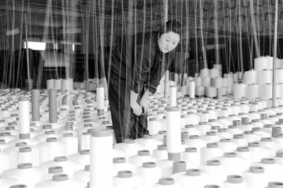 5月1日,在浙江省长兴县的一家纺织企业,工人在经编整经车间进行经编原料的上丝工作,加班加点赶制发往俄罗斯的床垫面料。据了解,今年以来,该企业借助“一带一路”倡议,产品远销东南亚、北美、南美、中东及北欧等地。