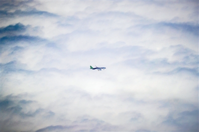图为在伴飞飞机上拍摄的C919。C919正在空中翱翔。万全 摄/人民画报