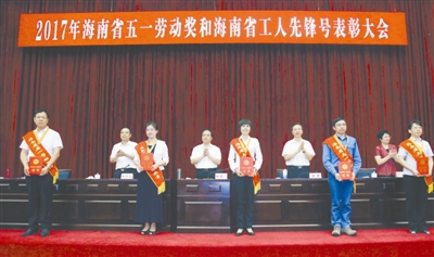 “2017年是海南实施‘十三五’规划、决胜全面小康的重要一年,省第七次党代会的胜利召开,标志着海南站在了新的历史起点上。希望受到表彰的先进集体和先进个人珍惜荣誉、再接再厉,在新的发展历程中,大力弘扬劳模精神、劳动精神、工匠精神,奋力打造‘海南质量’‘海南品牌’,用工人阶级的伟大品格和模范行为引导和鼓舞广大职工辛勤劳动、诚实劳动、创造性劳动,为加快建设‘经济繁荣、社会文明、生态宜居、人民幸福的美好新海南’再立新功!”表彰大会上,海南省人大常委会副主任、省总工会主席陈海波宣读全国总工会和省总工会表彰决定时,深情而深刻的话语,久久回荡在每位劳模的脑海中。