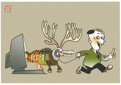 所谓灵感,无非是接受生活现象的启示。信息时代,网络生活让足不出户也可以“遛脑”成为可能。然而,有一种“遛一遛”非常值得关注。漫画家王献忠先生的作品《到百度里遛了一圈》,揭示的就是这种“遛”,讽刺的就是这种人。