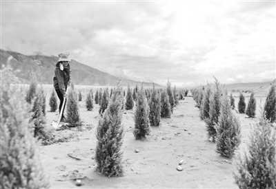 目前,西藏山南市扎囊县阿扎乡的万亩生态修复植物种苗繁育基地和桑耶镇的6万亩生态经济林治沙扶贫基地正在加紧建设。当地群众可通过入股、劳务等方式参与生态工程建设,增加收入。新华社记者 张汝锋 摄