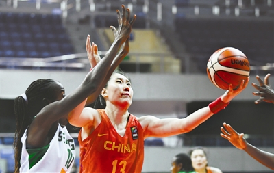 5月7日晚,中国女篮与塞内加尔女篮热身赛第三战比赛,中国女篮以93比67再次胜出。图为中国队孙梦然上篮。