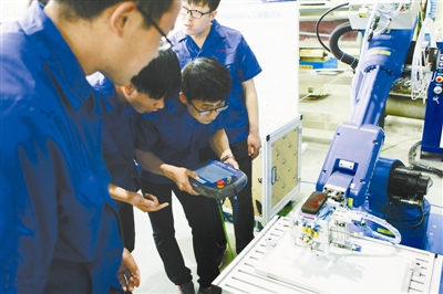 近年来,宁夏大力发展职业教育,不断加大投入并在银川市西夏区规划建设了占地8.8万平方米的宁夏职业教育园区。截至目前,园区内已建成包括电子信息、机械加工、能源化工、建筑技术、物流管理、现代服务、设施农业、清真食品、枸杞保鲜与加工等9个专业公共实训中心并投入使用,为全区的职业技能培训和鉴定提供了公共服务平台。 新华社发 (隋先凯 摄)