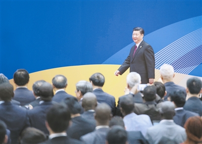 5月15日,“一带一路”国际合作高峰论坛在北京雁栖湖国际会议中心举行圆桌峰会,国家主席习近平主持会议并致辞。圆桌峰会闭幕后,习近平会见中外记者,介绍“一带一路”国际合作高峰论坛会议情况和主要成果。这是习近平步入记者会现场。
