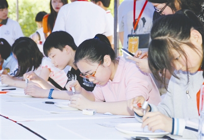5月13日,在2017年上海高职院校“职业体验日”活动现场,中小学生在体验上海工艺美术职业学院的瓷刻工艺项目。