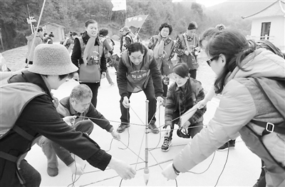 环山路长约7公里,掩隐在一层层绿色里,身穿“悦动营”营服的100多名营员在山路上蜿蜒成一条彩色的龙,孙虹和工作人员维持着队伍秩序。第一个拓展点位于水库堤坝,“先遣部队”已经提前布置好现场,水声潺潺,鸟鸣深涧,在一片欢笑声中,营员开始分组竞技,孙虹在一旁指挥。