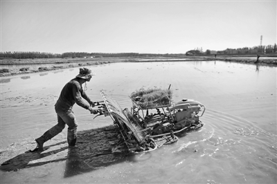 日前,黄河宁夏灌区百万亩水稻开始插秧。有着“塞上江南”美誉的黄河宁夏灌区是我国优质水稻生产基地之一,近年来,当地大力发展有机水稻、蟹田稻、富硒稻等水稻种植,采取智能化、立体化种植生产模式,提升水稻质量,提高土地利用率。图为一位农民在青铜峡市有机水稻生产基地的田间插秧。 新华社记者 李然 摄