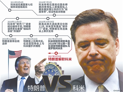 5月9日,美国总统特朗普解除了联邦调查局(FBI)局长科米的职务,结果却一石激起千层浪。舆论怀疑科米被炒可能与他正在进行的有关特朗普竞选团队“通俄”事件的调查有关。在特朗普疑似暗示曾对他和科米的谈话录音后,多名民主党议员已经表示,如果真有录音带,特朗普必须立即交给国会;如果没有,就应为误导性的言论向科米及美国民众道歉。