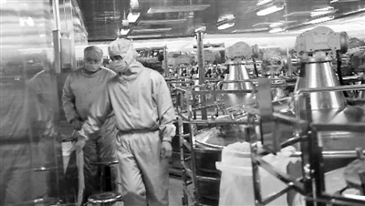 蒋龙介绍说,蛋白分离班组成立于2010年1月,当时仅有9人,3个人一个班,三班倒,每组工作12小时。现在班组共20个人,5个人一个班,四班倒,每组工作8个小时。“时间短了一点,毕竟人在里面待太久受不了。”