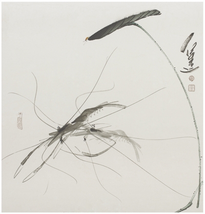 我通过画虾,也感悟到了那种动与静、阴与阳的变化,这种变化也正像庄子《逍遥游》里面所说的那种情境;和谐、轻松、自然。同时也有佛学中仁与和的上善理念。这是画中之理、画中之道。在绘画中我融入了虾的世界,虾融入了我的生活。纯熟后的哲思,使我对美的认识不断升华。