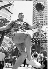 左图:5月18日,在青岛市2017年邻居节上,来自西班牙的社区居民马鲁鲁学踢蹴鞠。