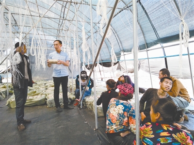 彭君(中)正在为村民提供技术指导。本报记者 杨学义 摄