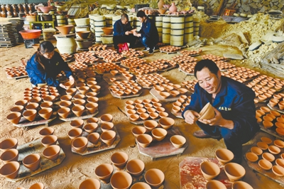 福建省建瓯市一家工艺厂工人在生产建盏(5月20日摄)。