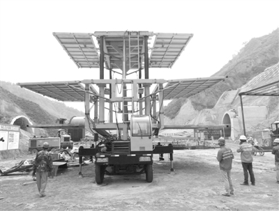 这台名为“自移动液压式多功能作业台架”的设备,被一线工人形象地称作“变形金刚”。这是中铁隧道集团蒙华铁路9标二工区员工李军和团队为满足预切槽试验而研发的一种可以灵活调节身高、臂长、体积的设备。厉玉鹏 摄