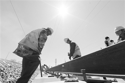 5月12日,吉林省长春市农安县长白铁路建设工地,工人们头顶烈日艰苦工作。中铁一局新运公司长白项目部承担着长(春)白(城)铁路工程的施工任务,集结近3000名员工昼夜奋战,确保8月15日具备开通条件。(刘顺良)