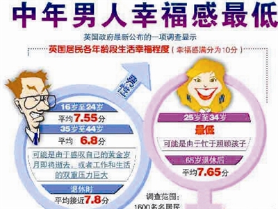 据了解,俄罗斯的研究者调查了来自80多个国家的200多万人后发现,在不同国家、不同人身上,幸福感随年龄变化的走势惊人地相似,均呈现“U”型曲线。性别、婚否、贫富、有无子女、职位与收入变化等因素都不会影响幸福感曲线的整体趋势。