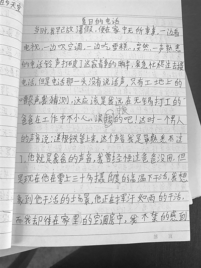 去年,丁芳爸爸去了外地的建筑工地打工。丁芳一旦有了烦心事,只能通过电话向爸爸倾诉,“一般都是我打电话给他,因为他在工地上,没事不会给我们打电话,怕我们担心。”丁芳告诉记者。