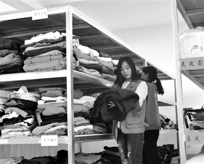 5月23日,在山东省聊城市茌平县爱心茌平众筹扶贫运营中心的扶贫超市,志愿者在整理捐赠的物品。该超市可供贫困户低价购买或者免费领取物品。赵玉国 摄/中新社