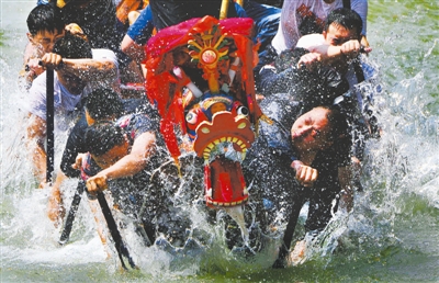 当日,各地举行各具特色的龙舟赛,共度端午节。