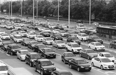 5月30日,车辆在G4京港澳高速公路石家庄裕华路口缓慢通行。