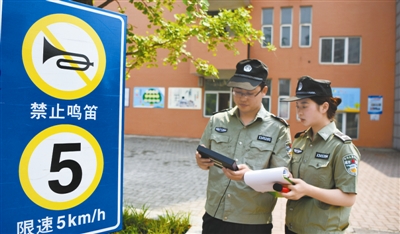 图为包河区常青街道城管队员使用仪器,在日常巡查工作中监测学校及工地周边环境噪音数值。本报通讯员 徐汐颜 本报记者 陈华 摄