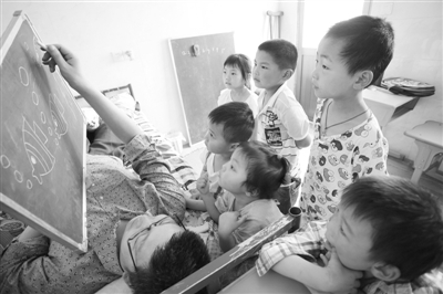 6月1日,叶海涛在爱心教室教孩子们画画。