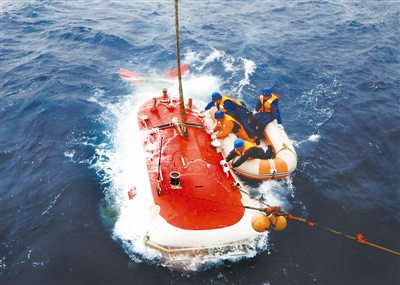 当地时间4日8时43分(北京时间4日7时43分),“蛟龙”号载人潜水器载着3名潜航人员在风雨中离开“向阳红09”科学考察船,进入太平洋洋面。11分钟后,在科考队员注视的目光下,“蛟龙”号向着雅浦海沟深处潜去。