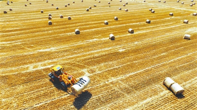 据了解,秸秆环保加工后可应用于农业种植养殖、生物质发电、工业产品加工等行业,不仅减少了焚烧秸秆带来的污染,还给农民带来了额外收入。 新华社发(张春雷 摄)