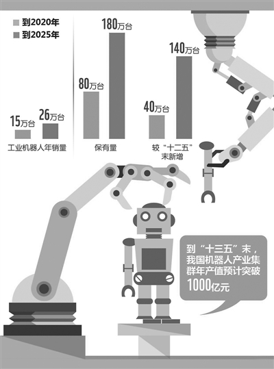 市场和政策利好不断,我国机器人产业以迅猛之势在国内国际扩展,中国已经成为全球工业机器人重要市场。根据工信部赛迪研究院发布的2016年版《中国机器人产业发展白皮书》显示,中国机器人产业已形成环渤海、珠三角、长三角和中西部四大区域集群。中金公司则预测,2017年全年国产工业机器人有望超过3.5万台,同比增长60%。