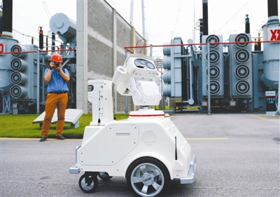 6月7日,在上海电力公司特高压练塘站,机器人“瓦力”在站内巡检。