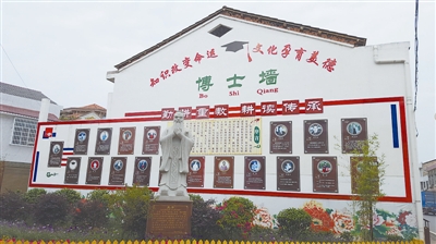 在来学校的路上,他会经过村头那面去年才建成的博士墙。这面墙上挂着19名博士的姓名、简历和照片,他们毕业的学校有哈佛大学、北京大学、清华大学、上海交通大学、南开大学……