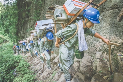 《跋山涉水网改路》组照之一 李 萍 国网湖北电力