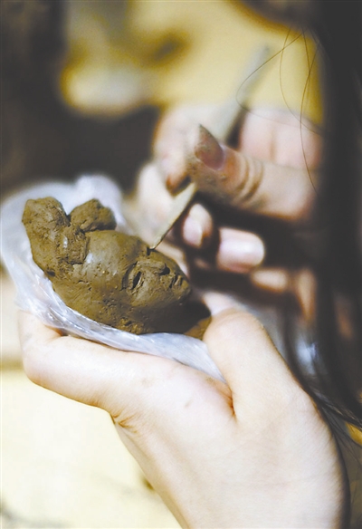 ↓6月10日,手工艺人在天津美术馆展示国家级非物质文化遗产项目泥人张彩塑。
