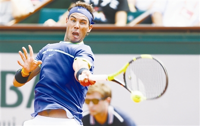 北京时间6月11日,法网男单决赛落幕。纳达尔以3比0横扫瓦林卡,第10次夺得法网男单冠军,这也是他获得的第15座大满贯奖杯。图为纳达尔在比赛中。新华社记者 韩岩 摄