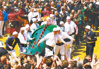 6月11日,在比利时南部小城蒙斯,人们参加“屠龙节”的重头戏——屠龙仪式。当天,本年度“屠龙节”的两个最重要的环节——盛装巡游和屠龙仪式在这里上演,将节日的气氛推向高潮。蒙斯“屠龙节”已有600多年的历史。2005年,蒙斯这一传统节日被联合国教科文组织列为“人类口头和非物质文化遗产代表作”。