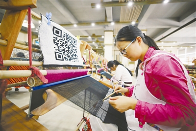 在张家界,土家织锦已成为当地特色旅游商品的一张响亮名片。近年来,当地根据顾客需求不断开发出二维码、汽车挂件、手提包、婚礼服饰等“私人定制”产品。这些产品不仅走俏当地旅游市场,还出口到泰国、美国等30多个国家和地区。新华社发(吴勇兵 摄)