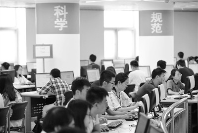 当日,北京教育考试院有关责任人表示,今年北京市继续实行高考全科目网上评卷,全市共设立6个高考评卷点,共有1137名教师参加今年的高考评卷工作。北京市2017年高考共需阅卷约20万份,评卷工作已于6月9日开始,预计将在22日结束。 新华社记者 王化娟 摄