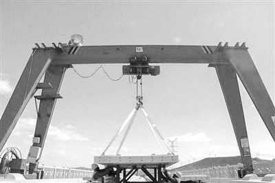 为了给京沈客专顺利完工奠定坚实的基础,中铁四局京沈客专辽宁段TJ-5标经理部近日召开“强质量、保铺轨、塑信誉,决战90天全面完成各项目标”劳动竞赛动员会,吹响了最后冲刺的集结号。图为采用轮轨式门吊技术进行铺板作业,大大提高了作业效率。 叶飞 摄
