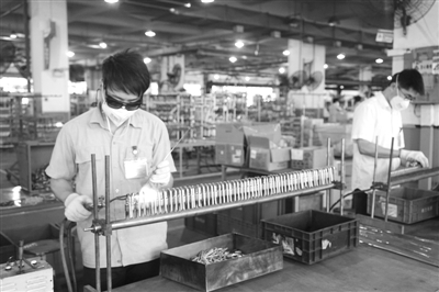 “管路好比是空调的血管,压缩机是空调的心脏,换热器则是空调的皮肤和肺,它们是空调最核心的三个部件。”6月8日,珠海格力电器两器管路分厂厂长助理刘克光告诉本报记者,该厂管路二车间弯焊班就是制造管路的。