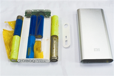 拆开后的”山寨“充电宝,有些电池锈迹斑斑。本报记者 吴凡 摄