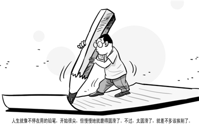 人生就像不停在用的铅笔,开始很尖,但慢慢地就磨得圆滑了。不过,太圆滑了,就差不多该挨削了。赵春青 画