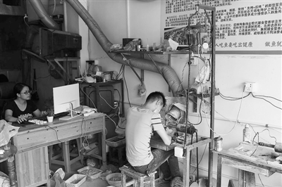 在四会市,这样的家庭玉器作坊仍不少。胡汉清说:“当年整个村子有数千家作坊,到处飘散着粉尘,走到哪都能听到机器的轰鸣声。”