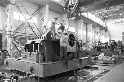 经过一台正在组装管道的汽轮机组时,吴国林停下了脚步,不无感慨地说:“你看看这个管道,做得多漂亮多整齐,不容易啊!”