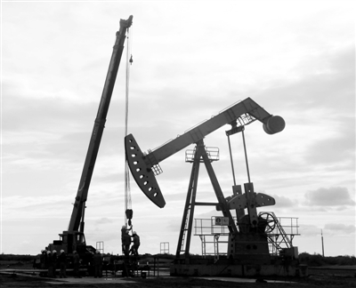 西北油田采油一厂积极开展提质增效活动。6月9日,该厂利用新设备给不压井更换光杆,每口井节约费用1万元左右。图为该厂采油管理二区采油工正在落日的余晖下作业。